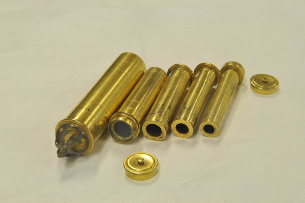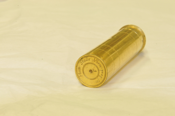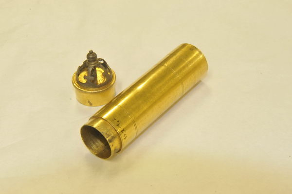located on base of brass cylindrical case
