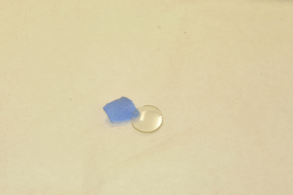 Focal length measured first directly with card in large collimated beam. Gasket off-center. Grozed. Gives triple image (one dominant).