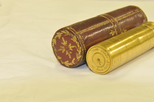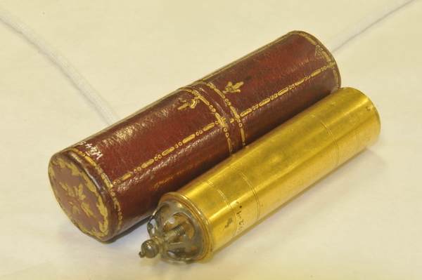 Materials: brass, leather, glass, pasteboard