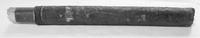 This thin telescope has three pasteboard draws and a main tube decorated in gold-tooled leather. The leather is abraded in many places, but certain details of the tooling (a small bird, fleur de lis) are visible upon close examination. It has a plano-convex objective and a plano-concave eyepiece; as in No. 1, both planar surfaces face outward. The objective of diameter 31 mm has been stopped down by a lignum vitae ring to c. 18 mm; the eyepiece of diameter 23 mm has a free opening of 12 mm. The lenses could be removed for optical measurement and proved to have focal lengths of c. 1010 mm and 78 mm, respectively, yielding a magnification of 13 times (note that it was not possible to remove the second draw, but extrapolating from the lengths of the main tube and the first and third draws, the total length of this instrument was surely long enough to accommodate the requisite separation of the two lenses, namely 932 mm = 1010 mm – 78 mm). Though the inner diameters decline from 34 mm for the main tube to 27 mm for the innermost draw, the outer diameters appear to be constant (two rings are missing), yielding the familiar cylindrical form when the instrument is drawn in.