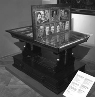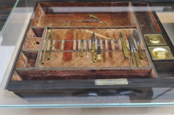 Study of the telescope from the Pommerscher Kunstschrank (Bolt and Korey, 2011, p.235 no.1) led the authors to consider whether another Kunstschrank or similarly complex piece of upper-end furniture might have a telescope associated with it (Cf. Hauschke, ‘Scientific Instruments’ (2006), for instruments in this context). This led to the identification of a collapsible desk-table at the Kunstgewerbemuseum (Museum of Decorative Arts) in Pillnitz, near Dresden, which had been ascribed to the circle of Philipp Hainhofer of Augsburg (cf. No. 1). Continued investigation of archival sources and prior inventories of the contents of the desk-table led to an unidentified leather object in storage. Inspection showed that it contained glass lenses and was undoubtedly a telescope; it is presented here for the first time.