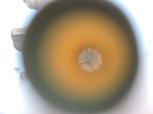 When focused at infinity, the separation between lenses is 935 mm. Cf. 932mm in publication. Planar side may actually be slightly (and variably) concave. Objective focal length is 1010 mm, giving an ocular focal length of 78 mm.