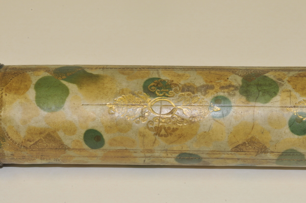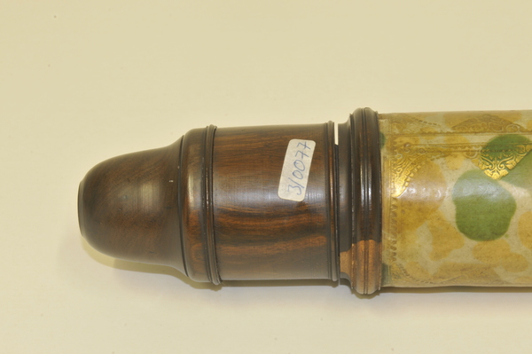 Materials: lignum vitae, parchment, pasteboard, wood, glass, gold tooling