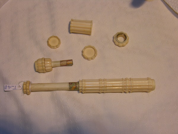"Two-draw telescope made of curved African ivory fluted lengthwise.