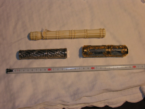 Length 13.2-21 cm, Ø 1.8-2.2 cm. Convex objective lens Ø 1.5 cm