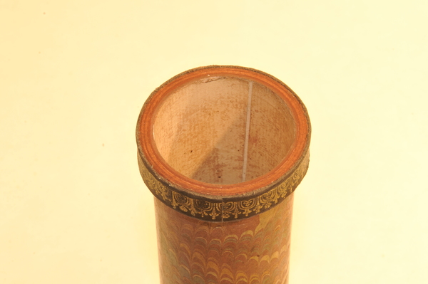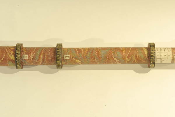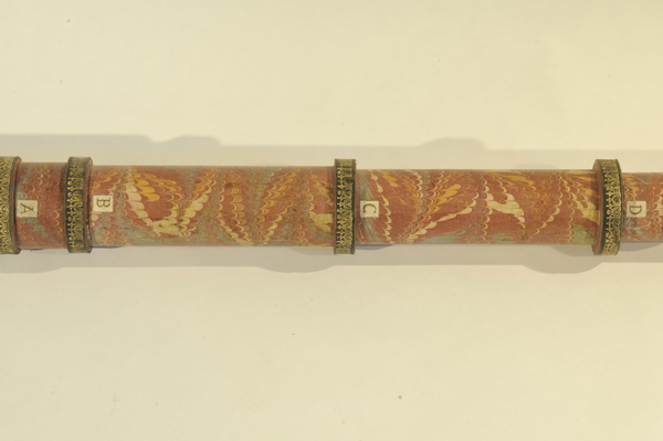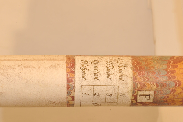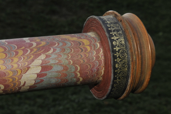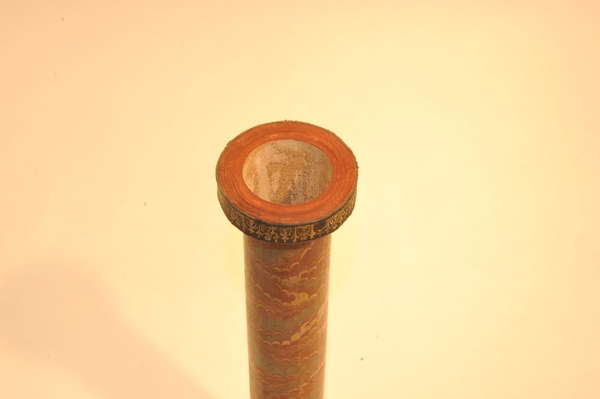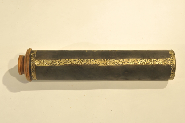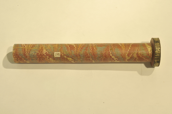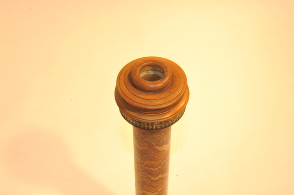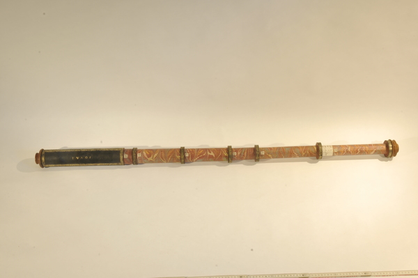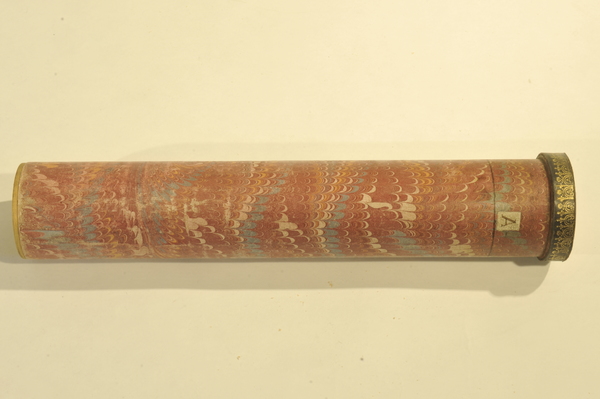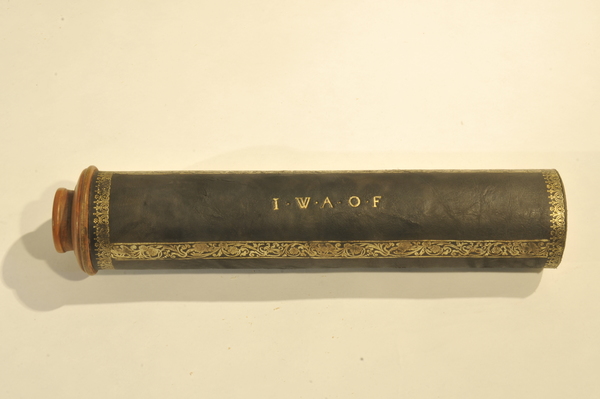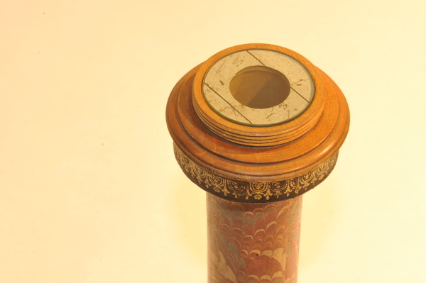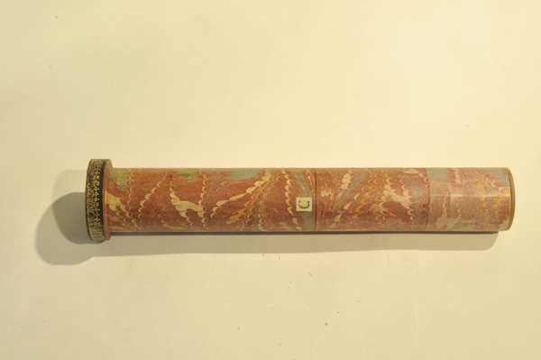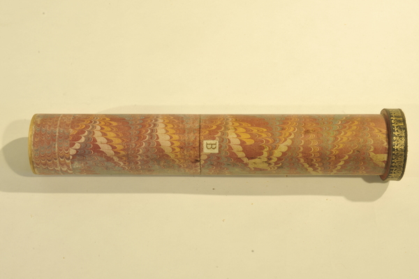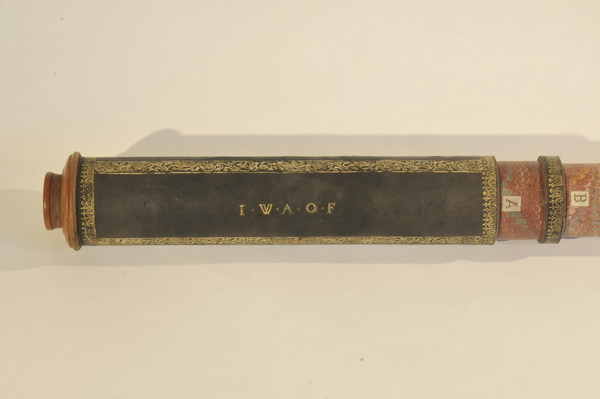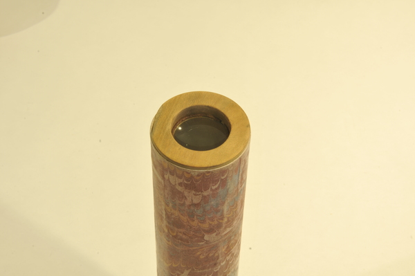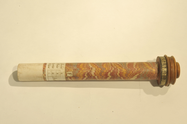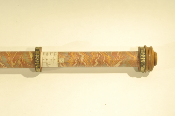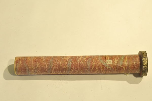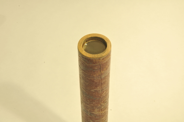Very clear image with just a slight hint of yellow. Objective is only held in place by a finely turned wooden end cap and inside by a thin paper ring (just enough that it doesn't easily move). Constant outer diameter of the ferrules rather a "relic" in this case; with the early Galileans and their minimal filed of view, it was absolutely necessary to mount them in a channel (rings gave parallel support in this case); with a steady hand in the case of the Wiesel telescopes this was no longer necessary. Rolf Willach believes it is possible that Wiesel only knew of telescopes in this form. The 2nd marking ring on draw "D" - for use as an astronomical telescope (with removal of "A" and "B", thus yielding a 2-lens ocular in place of the full 4-lens terrestrial ocular system).