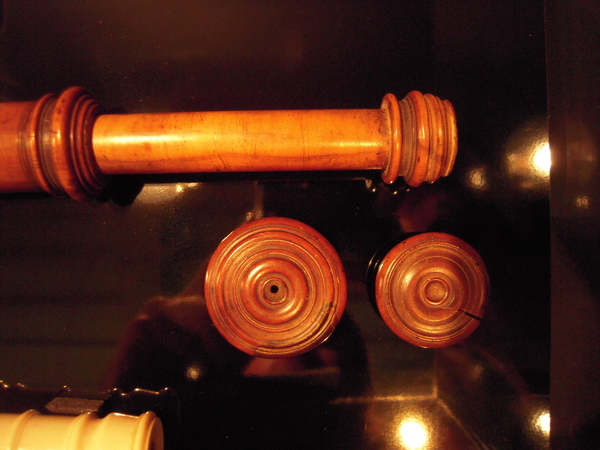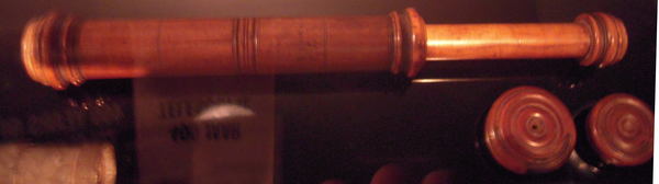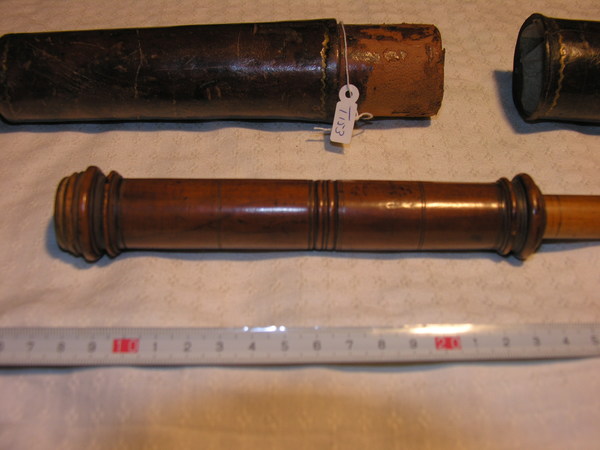 In view of the style of wood turning, which is also rather characteristic to the Dutch furniture of the seventeenth century, this instrument could have been manufactured in the Netherlands. In that country it was customary to store telescope lenses separately from the tubes, so this also could explain the loss of the lenses. A telescope slightly resembling this instrument (length 12-23 cm) was found in the shipwreck of the Swedish vessel ‘Kronan’, which was sunk in 1676 in the Baltic Sea, after a clash with the Danish-Dutch fleet" (Louwman and Zuidervaart, 2013).