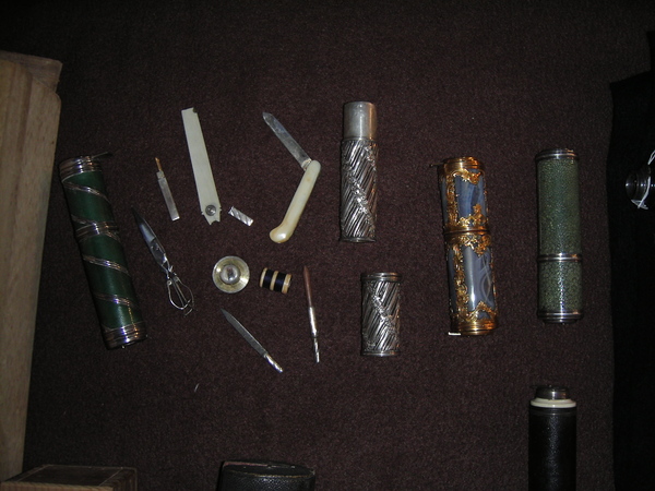 "Small carved silver spyglass, combined with a sewing kit (length 11.3 cm). Unsigned, but attributed to Thomas Ribright, who according to a 1749-patent had the exclusive right of producing this kind of luxurious telescopes with accessories. Third quarter of the eighteenth century" (Louwman and Zuidervaart, 2013).