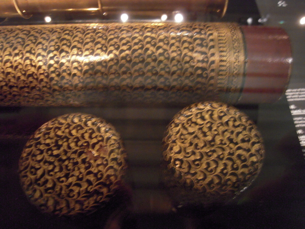 Materials: wood, glass, horn, lacquer, brass, gold tooling