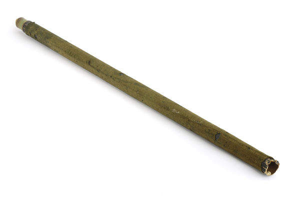 "This non-achromatic telescope has a decagonal barrel covered with green baize. There is a single draw tube made of green vellum, which has three black stop lines drawn onto it to indicate the different working lengths of the telescope according to the distance of the object being viewed. The other fittings are of ivory, although both the objective lens assembly and the eyepiece cap are now missing, as is part of the end of the barrel. The length of the telescope suggests that it was mainly intended for astronomical observations and would have been supported by some sort of stand when in use" (Royal Museums Greenwich).