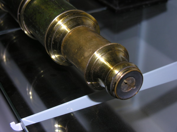 Dollond stops using flint forward in 1759. Dating is secure from purchase by Royal Observatory in Stockholm. Bengt Ferner traveled to London to see Dollond summer 1759 and ordered several telescope, which were already crown forward. (Royal Observatory has largest Dollond doublet-- 4 inches, with two square wooden tubes, objective has yellowish Venetian crown glass). Black sharkskin is earliest known Dollond and Son. Trade card in box says J Dollond and Son. Telescope is crown forward doublet, thus after 1759. J Dollond dies November 1761, so dating secure at 1759-61. The five lens eyepiece is in brass, main tube is wood, and telescope is in its original box.