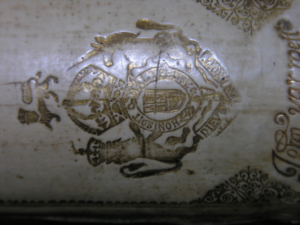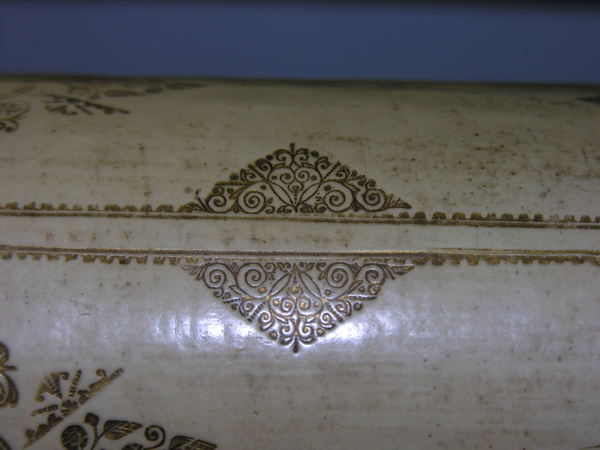 Materials: parchment, glass, pasteboard, lignum vitae, gold tooling