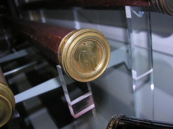 Wooden 10-sided tubes. 5 lens eyepiece. Flint forward. Signature "Dollond" used up to time Peter joins. "P Dollond" or "P Dollond Strand" signature after John Dollond's death in 1761. After 1766 Peter Dollond uses "Dollond / London" until end of his life. [probably 36 in]