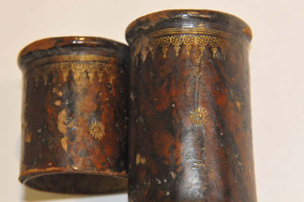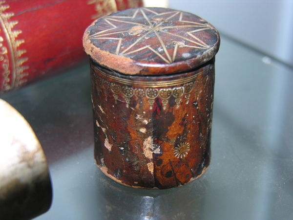 Materials: paper, pasteboard, glass, wood, leather, gold tooling