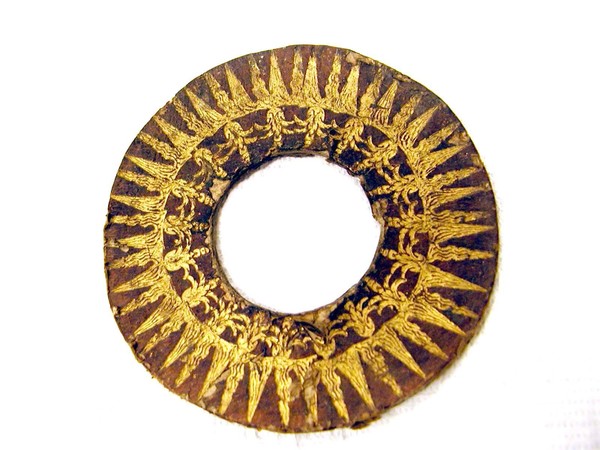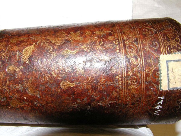 Materials: leather, pasteboard, glass, gold tooling