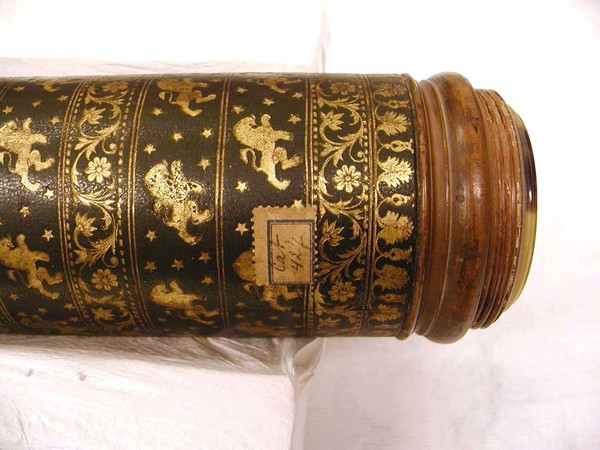 Materials: wood, pasteboard, paper, leather, horn, glass, gold tooling