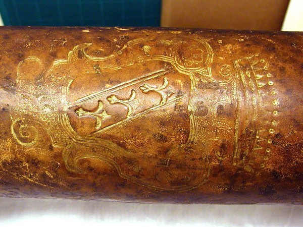 Materials: gold tooling, leather, pasteboard, vellum, wood