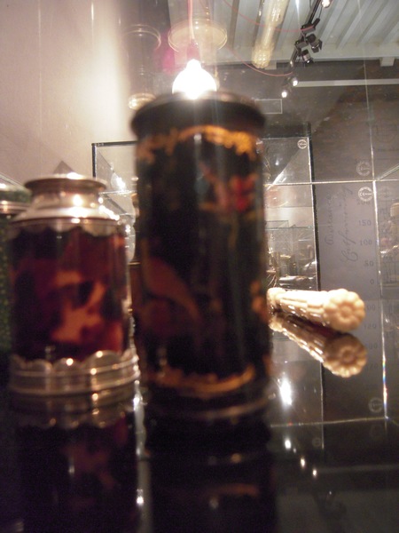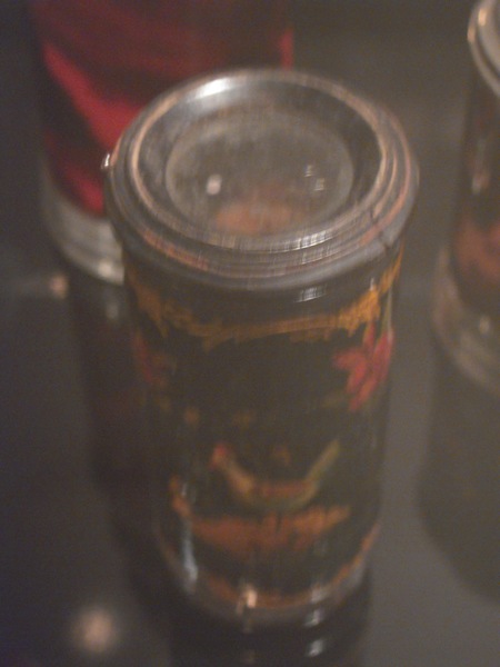 "Spyglass with a black lacquered body, decorated among others with a bird and flowers on lacquered wood. Short green drawtube with gold tooling. Length 7-10 cm, Ø 3 cm. Unsigned, but the decoration and tooling is characteristic of Pietro Patroni from Milan. First half of the eighteenth century.