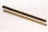 "There are two tubes, both made of copper:one in which the objective lens is fitted and another one with the eyepiece. The two tubes can be screwed together when the telescope is used. Total length 186 cm, Ø 5.5 cm. After usage the tube with the eyepiece can be stowed in the wider tube with the objective. The (broken) objective lens is signed: ‘G. Cramer Groningae Fecit’. First half of the eighteenth century.