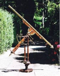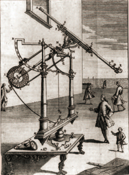 "Italian telescope on a peculiar equatorial stand, with a quadrant, circle and micrometre. Tube length 195 cm, Ø 2 cm. Unsigned, but made by Biasio Burlini according to the design, published by Burlini in a brochure dated at approximately 1720.
