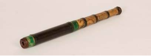 "Main tube covered with black sharkskin and green coloured leather. Four drawtubes covered with so called kleisterpapier (‘paste paper’). Ferrules made of horn. Wooden end pieces. Signed on the objective: ‘Pietro Beltrami in Milano’. Length 27-93 cm, Ø 4 cm. Mid-eighteenth century .