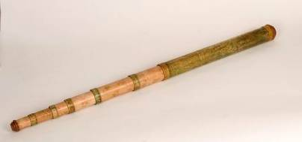 "(Presumably) German telescope. Main tube and ferrules covered with light green coloured parchment. Six drawtubes, covered with white parchment, tooled with floral motifs. Fittings made of wood. Length 80-231 cm, Ø 7 cm. Unsigned. Presumably made in the early eighteenth century" (Louwman and Zuidervaart, 2013).